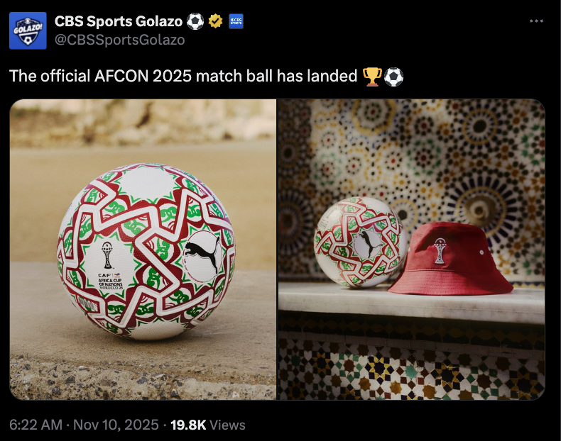 The other reason to call attention to this is because AFCON tends to get a bum rap (excuse me, the correct and accurate name of the tournament is TotalEnergies CAF Africa Cup of Nations). Notwithstanding comments from certain on-air personalities earlier in 2025 which appeared to place AFCON on a level below that of “major tournaments,” here at Hooligan we do think it’s a big deal. And to be fair with a game ball as striking as this one, it’s another reason to turn in and watch.