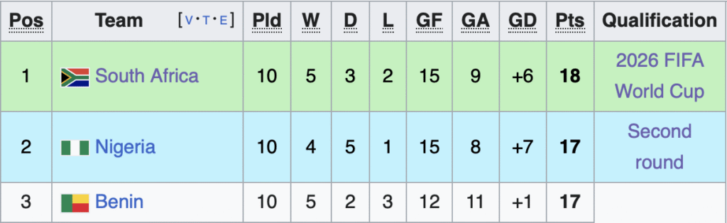 You rarely see such dramatic shifts between three teams in the final games of qualification, but that’s what we got. Benin was a surprise leader; Nigeria was a surprise third place side. And surprise, surprise… it’s South Africa who ends up getting the ticket to the going to the U.S. Poor Benin, they were so close but couldn’t seal the deal.