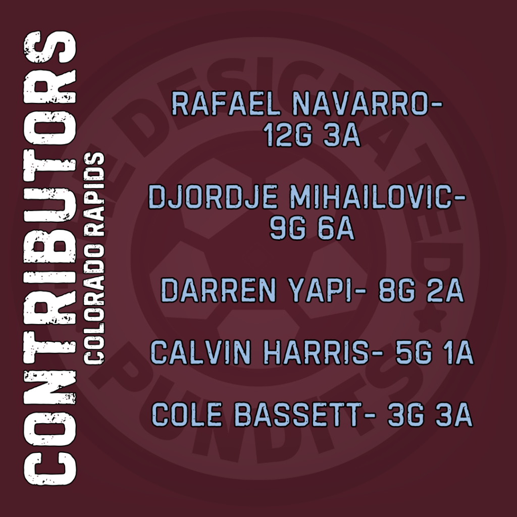 The Rapids also changed #10s during the season, selling Djordje Mihailovic to Toronto and bringing Paxten Aaronson back to MLS after three years across Germany and the Netherlands. Mihailovic contributed 9 goals and 6 assists while playing just over 2,000 minutes.