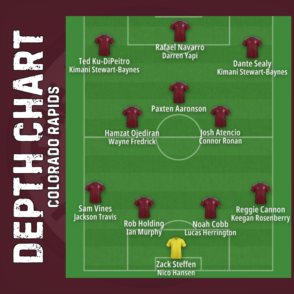 Incoming transfers include Hamzat Ojediran from Lens (right) and Dante Sealy from Montreal. Both filll holes and plug in as projected starters. The Rapids will also bring in SuperDraft and MLS Next Pro players.