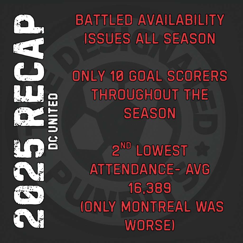 DC’s 20 goals was worst in MLS, their 66 allowed was tied for 2nd worst in MLS, and their -36 goal differential was worst in MLS. There was not one offensive or defensive problem to blame for a lack of results; the whole project was a failure.