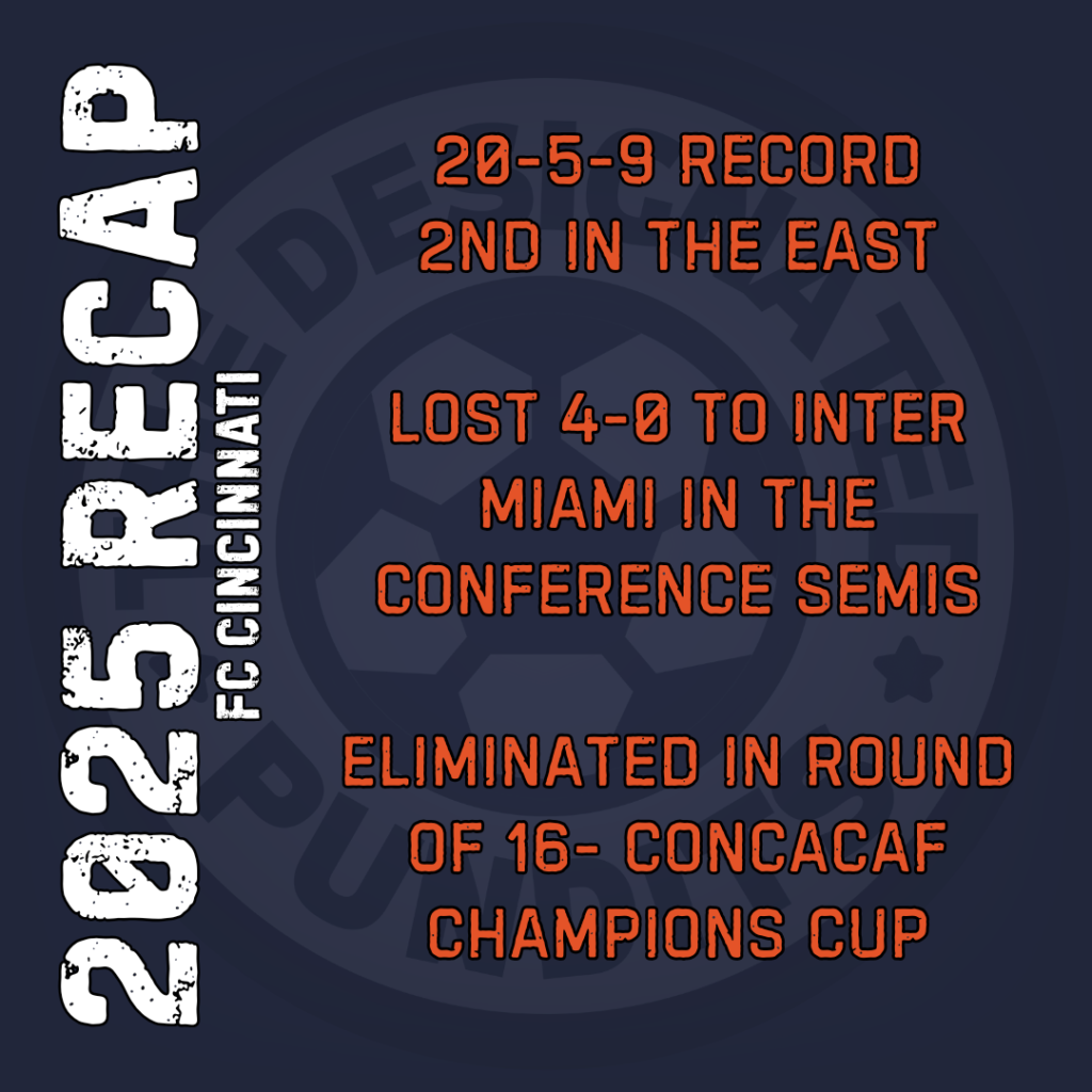 FC Cincinnati had a great 2025 season, finishing 2nd in the Supporter’s Shield race, and second in record to Inter Miami. They finished with the 8th best offense in the Eastern Conference, but had the 2nd best defense.