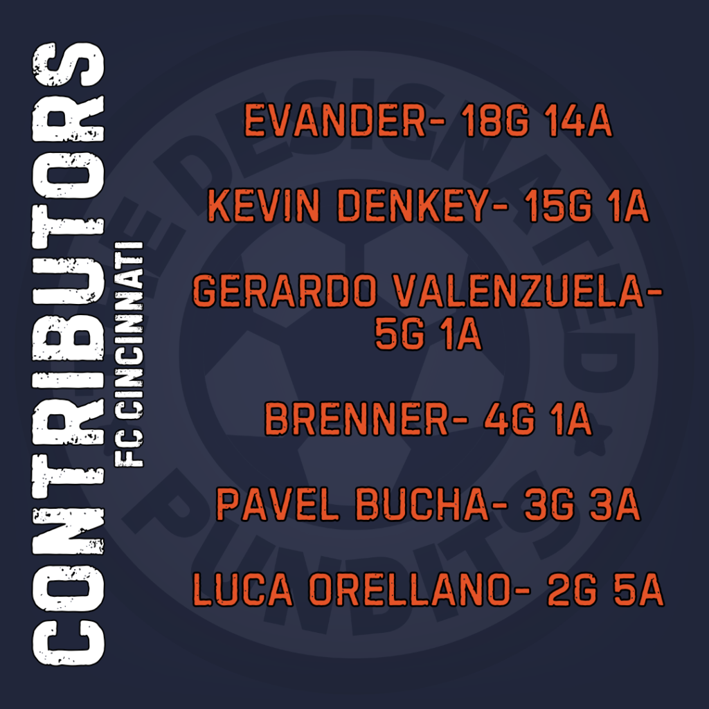 FC Cincinnati started the season with a blockbuster trade, sending their All-Star #10 Luciano Acosta to Dallas and bringing in another top #10, Evander, from Portland. The move worked; reports of Luco’s unhappiness ceased and Evander made 32 goal contributions.