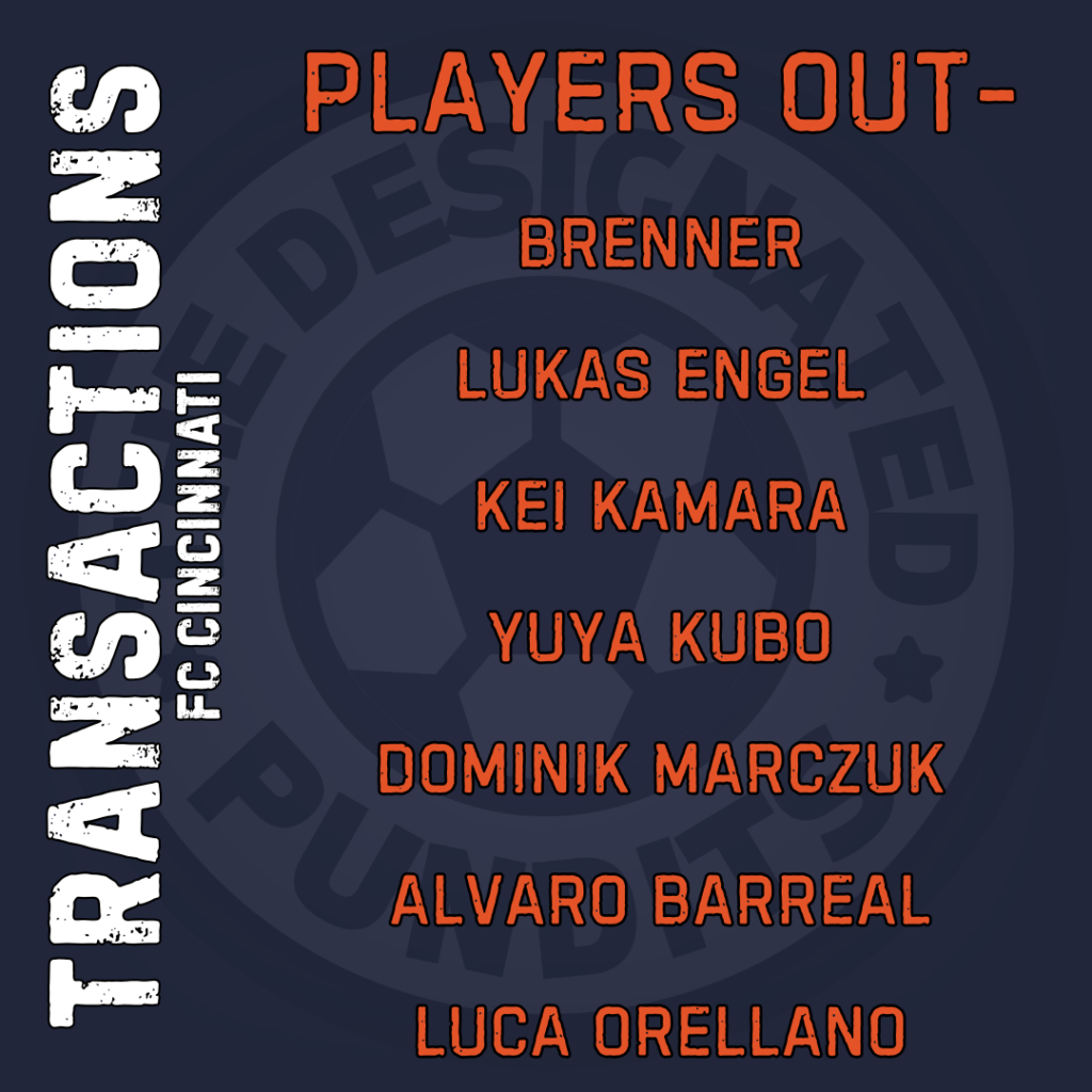 FC Cincinnati had some turnover, with Brenner’s loan expiring and multiple players moving out. Luca Orellano’s multi-million dollar move to Monterrey is a notable departure, but he has already been replaced on our depth chart.
