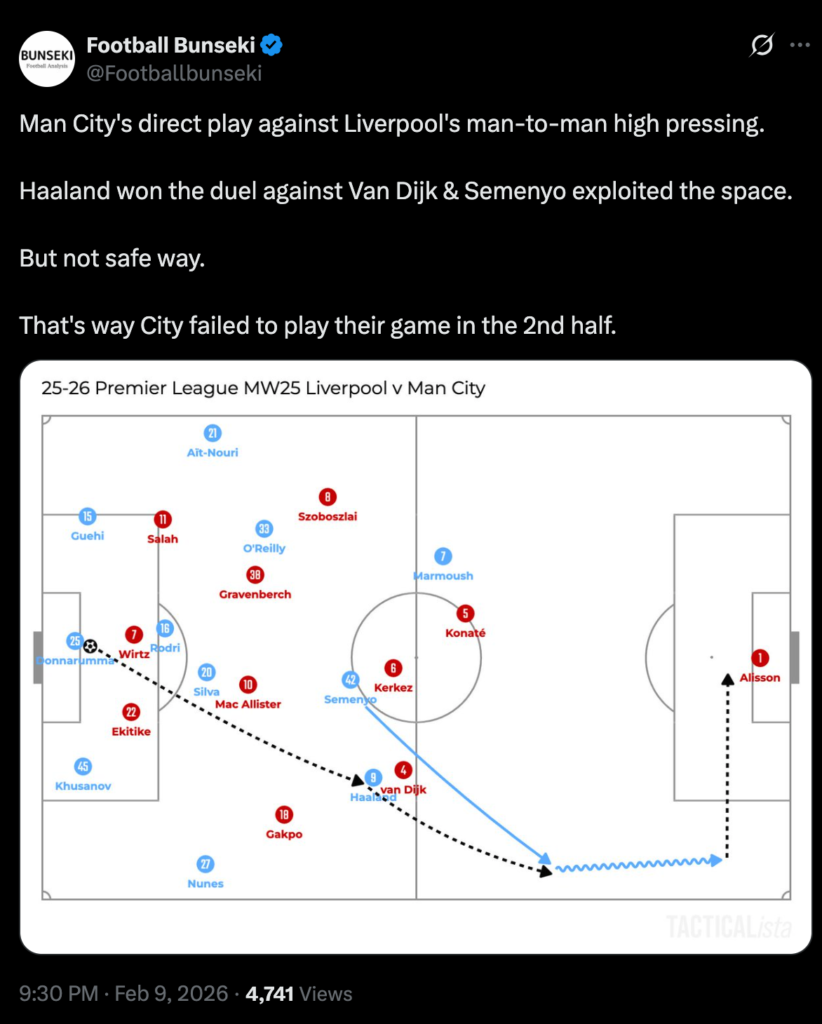 Meanwhile, in Manchester, the adjustment has been different. Guardiola has not abandoned control, but he has allowed more verticality into his side. In recent months he has spoken about studying teams such as Bournemouth and Newcastle, sides that attack with direct intent but without losing structure. That influence is visible.