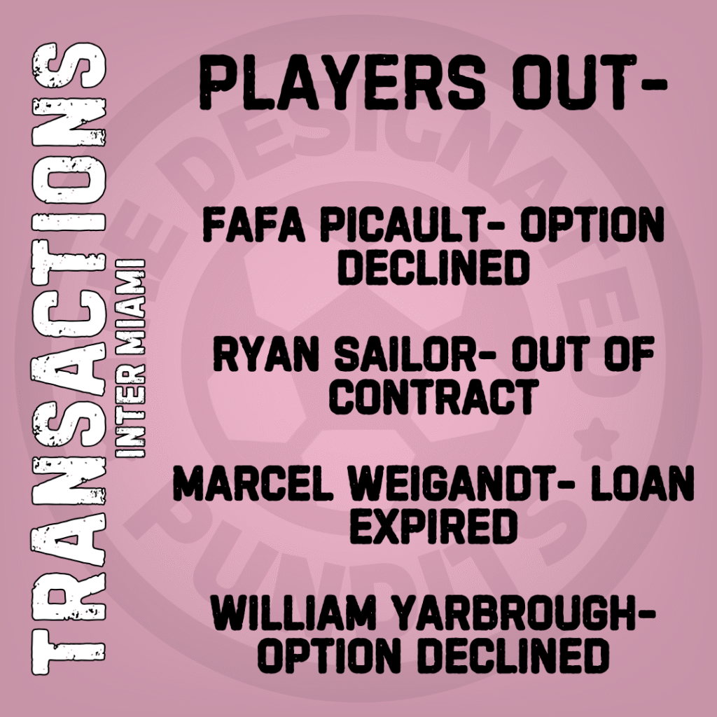 Inter Miami has a pair of retirements, with Jordi Alba and Sergio Busquets calling it quits at season’s end. Other losses seem minor- mostly MLS veterans making way for new signings.
