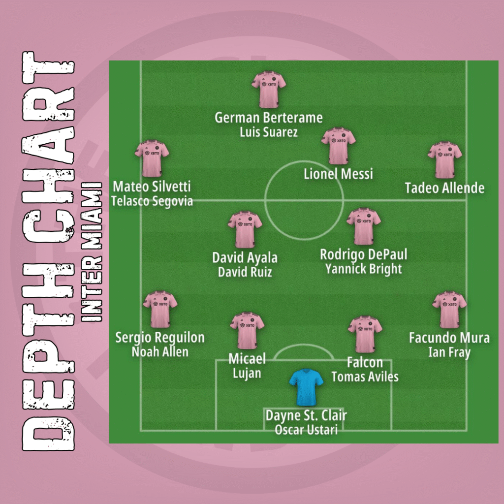 Inter Miami played a 4-4-2 or 4-2-3-1 most of the season, and that’s what we expect again. The difference is if you prefer to see Messi listed as a #10 or as a second striker- I even dreamt this up as a 4-2-4 in my own head.