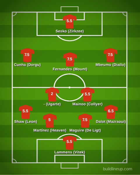 The encouraging news for Carrick is that the attacking line rates relatively strongly — Fernandes, Mbeumo and Cunha give United a match-winning core — but the Leeds defeat underlined how quickly standards drop when two or three of those pillars are missing.