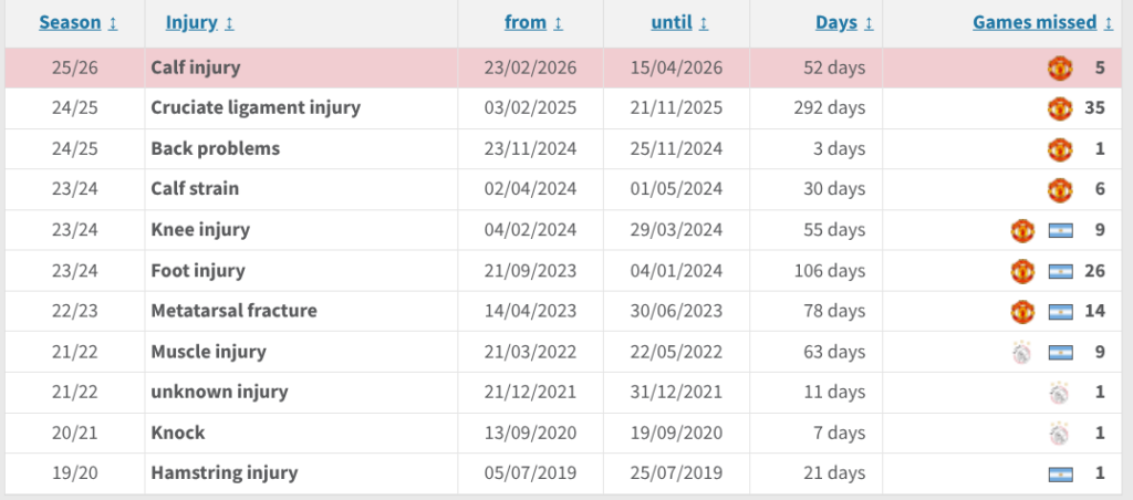 Noussair Mazraoui (3): The Moroccan’s season has been disrupted by injury, illness and the Africa Cup of Nations. He has filled in at both full‑back roles, wing‑back and even centre‑back. His dribbling and passing offer a strong attacking outlet when fit. He’s been the back-up option under Carrick.