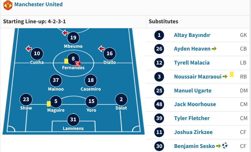 In six matches in charge, Carrick’s only alterations to his starting XI have been injury-enforced. Matheus Cunha has replaced Patrick Dorgu, who is out for the season, while Lenny Yoro replaced Lisandro Martínez at Everton.