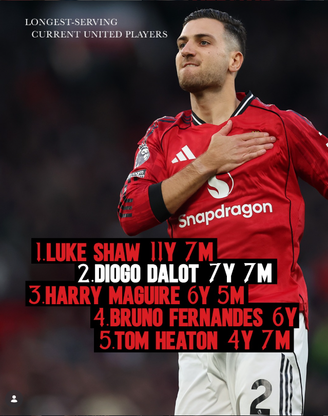 Luke Shaw (30), Harry Maguire (32) and Diogo Dalot (26) are the club’s three longest-serving players. They were joined by World Cup winner Lisandro Martínez (28) in defence for the 2-0 win over Manchester City in his first match.