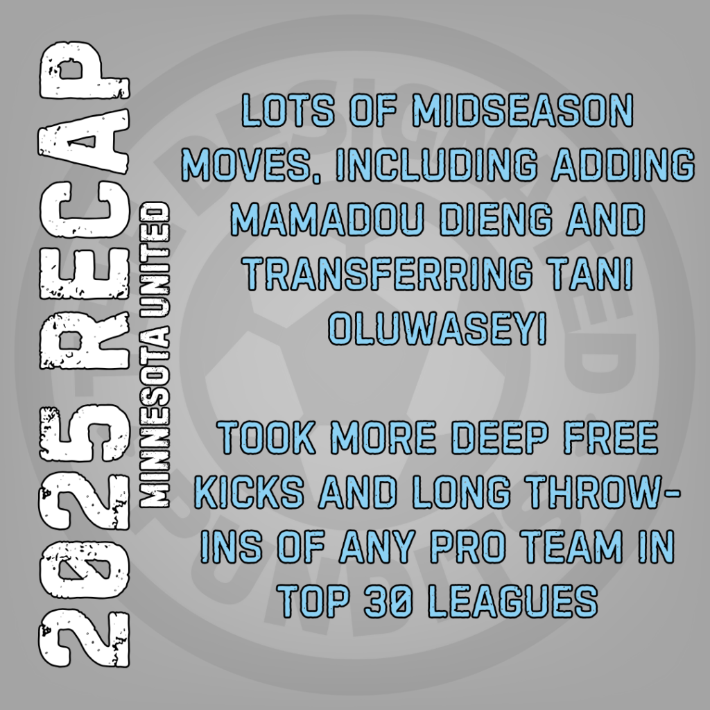 Another oddity, Minnesota took more deep free kicks and long throw-ins of any professional soccer team in the top 30 leagues. They loved set pieces and counter attacking soccer.