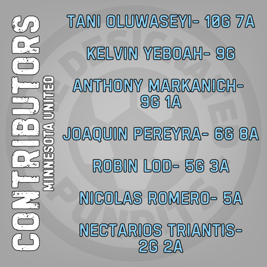Minnesota lost a lot of offense trading away Tani Oluwaseyi in late August to Villarrea (pictured right)l. Kelvin Yeboah, his replacement, was never quite able to stay healthy and get rolling. He finished with around 2,000 minutes and only 9 goals.