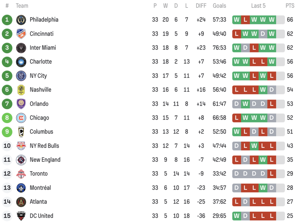 Philadelphia Union has not only won the Supporter’s Shield, they’ve also locked in top spot in the East. Congrats, Philly, you just got a second trophy in a calendar year!