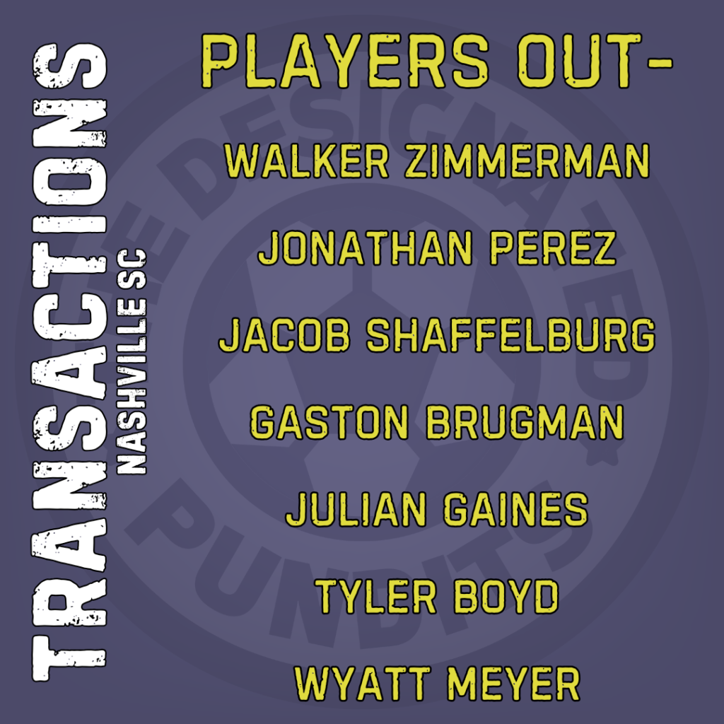 Outgoing players for Nashville SC include Walker Zimmerman, possibly the most sought-after centerback in MLS. They also saw pieces like Jonathan Perez, Jacob Shaffelburg, and Gaston Brugman leave in the winter.
