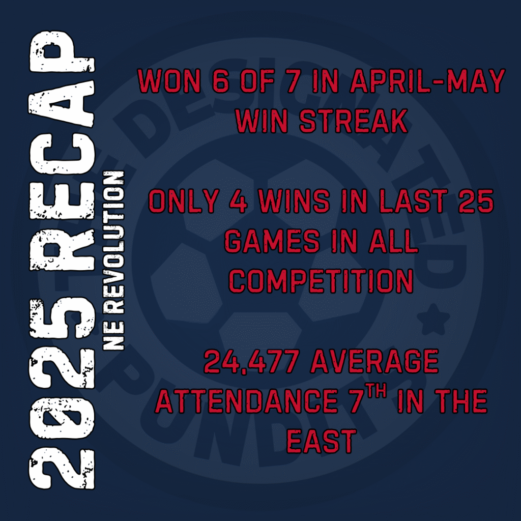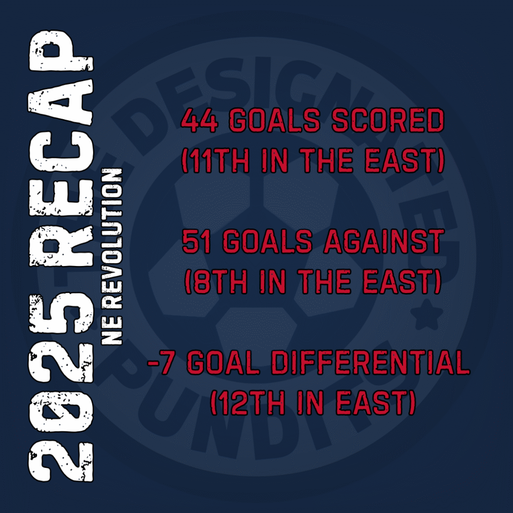 The Revs’s 2025 season is best summarized as a failure on all fronts. They finished 11th in the east and were particularly poor at home. Both offense and defense performed below the Eastern Conference averages, and they finished with a -7 goal differential, missing the playoffs for the 2nd straight year.