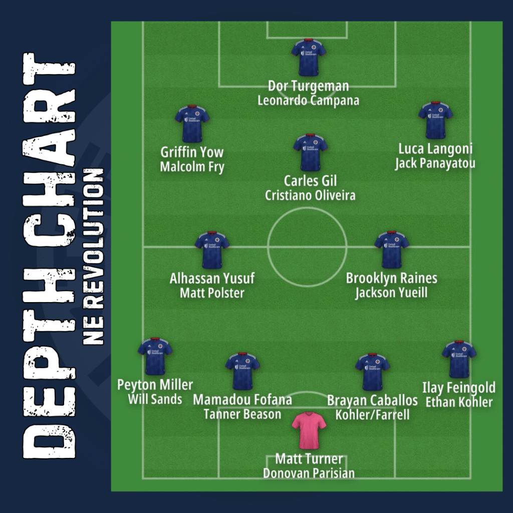 With the current roster, you will see one quality winger on each side with Luca Langoni and Griffin Yow. The Revolution also have two quality strikers in Dor Turgeman and Leonardo Campana. We made this depth chart as a 4-3-3, but if there are any roster moves, such as sending out Luca Langoni, this could easily switch to a 4-4-2, or more specifically a 4-1-2-1-2. Luca Langoni has the quality that demands he play in his natural position. Without him, the 4-3-3 won’t looks as effective.