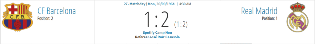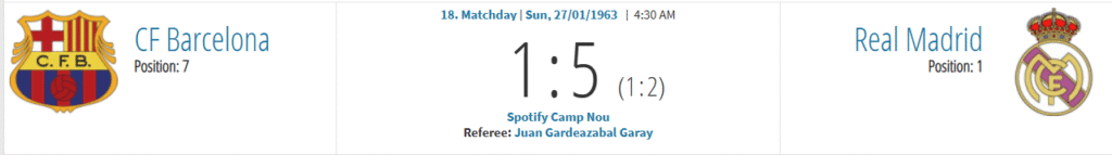 From April 22, 1962, to February 28, 1965, Real Madrid won seven consecutive El Clásico matches. This period coincided with Madrid’s golden era, led by legends like Alfredo Di Stéfano, Ferenc Puskás, Paco Gento, and later Amancio Amaro. During the streak, Los Blancos scored 22 goals and conceded only five and won La Liga every season.