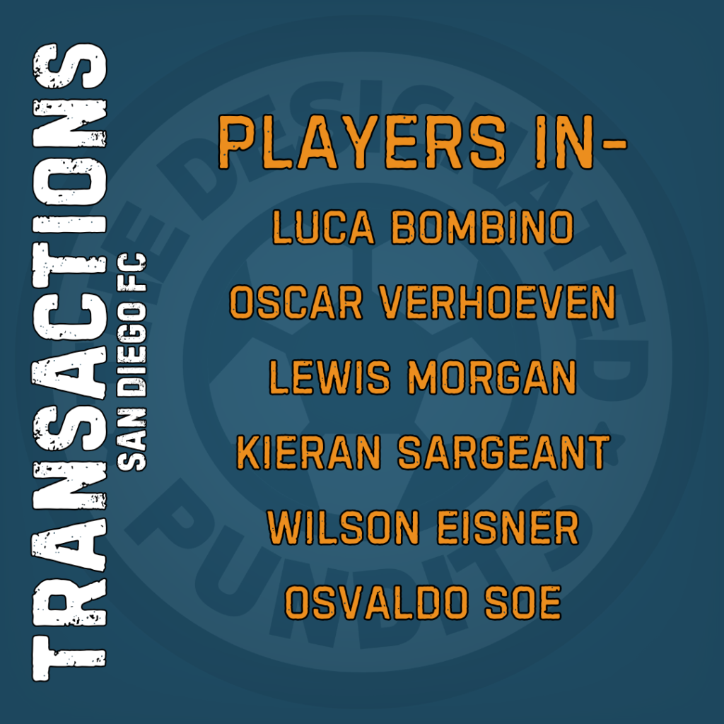 San Diego had some good depth leave the squad this offseason. With expansion teams, it isn’t uncommon to see a bunch of outgoing moves. SDFC said goodbye to Luca de la Torre, Franco Negri, Bruseth, and Paddy McNair.