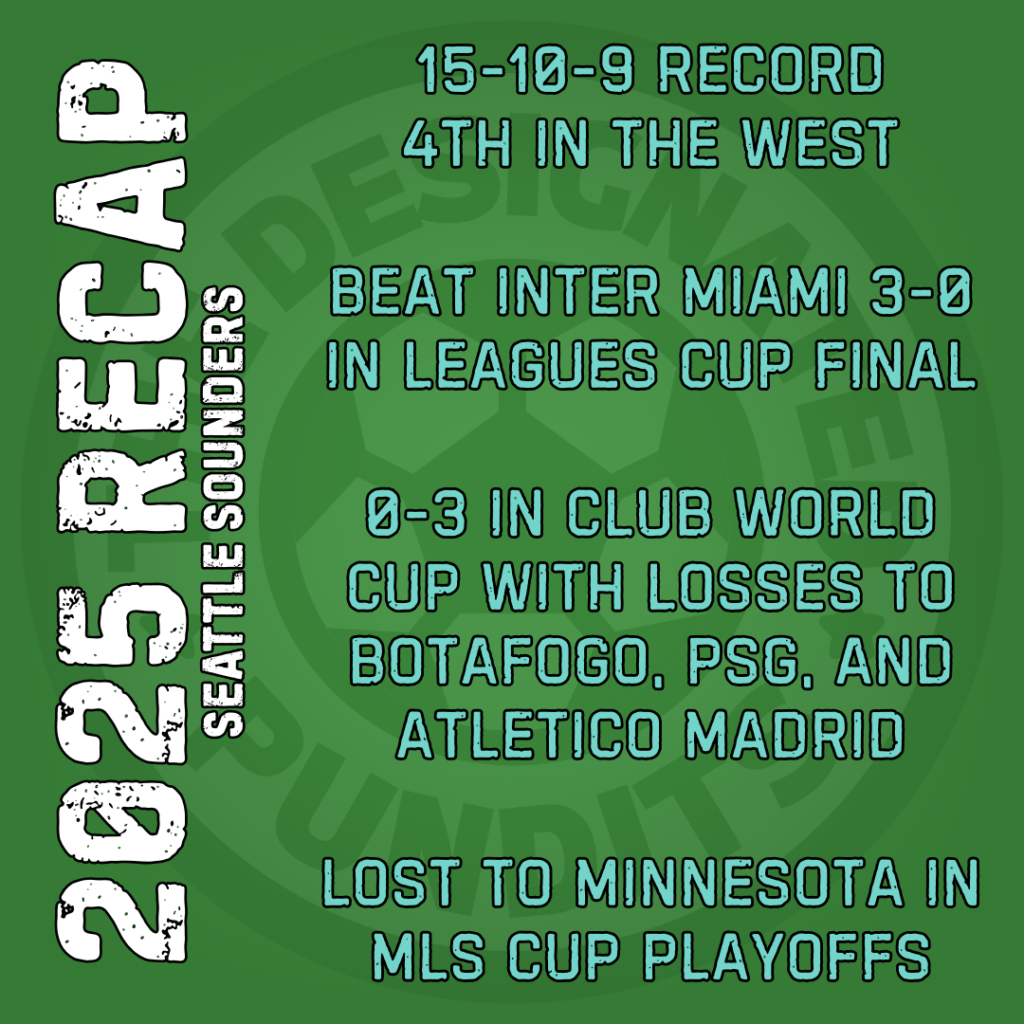 The Seattle Sounders finished 4th in the Western Conference with a 15-10-9 record, and secured The Leagues Cup by beating Inter Miami 3-0 in that final. They also lost all 3 Club World Cup games, but felt they were at least competitive against PSG, Atletico Madrid, and Botafogo.