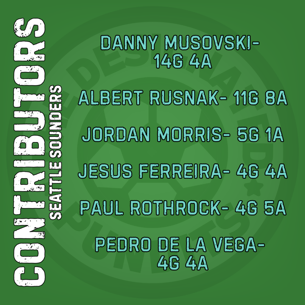 In a season where Seattle struggled with injury and finding their stars’ best positions, Danny Musovski led the team with 14 goals and 4 assists.  Albert Rusnak (right) continues racking up MLS stats, adding 11 goals and 8 assists.