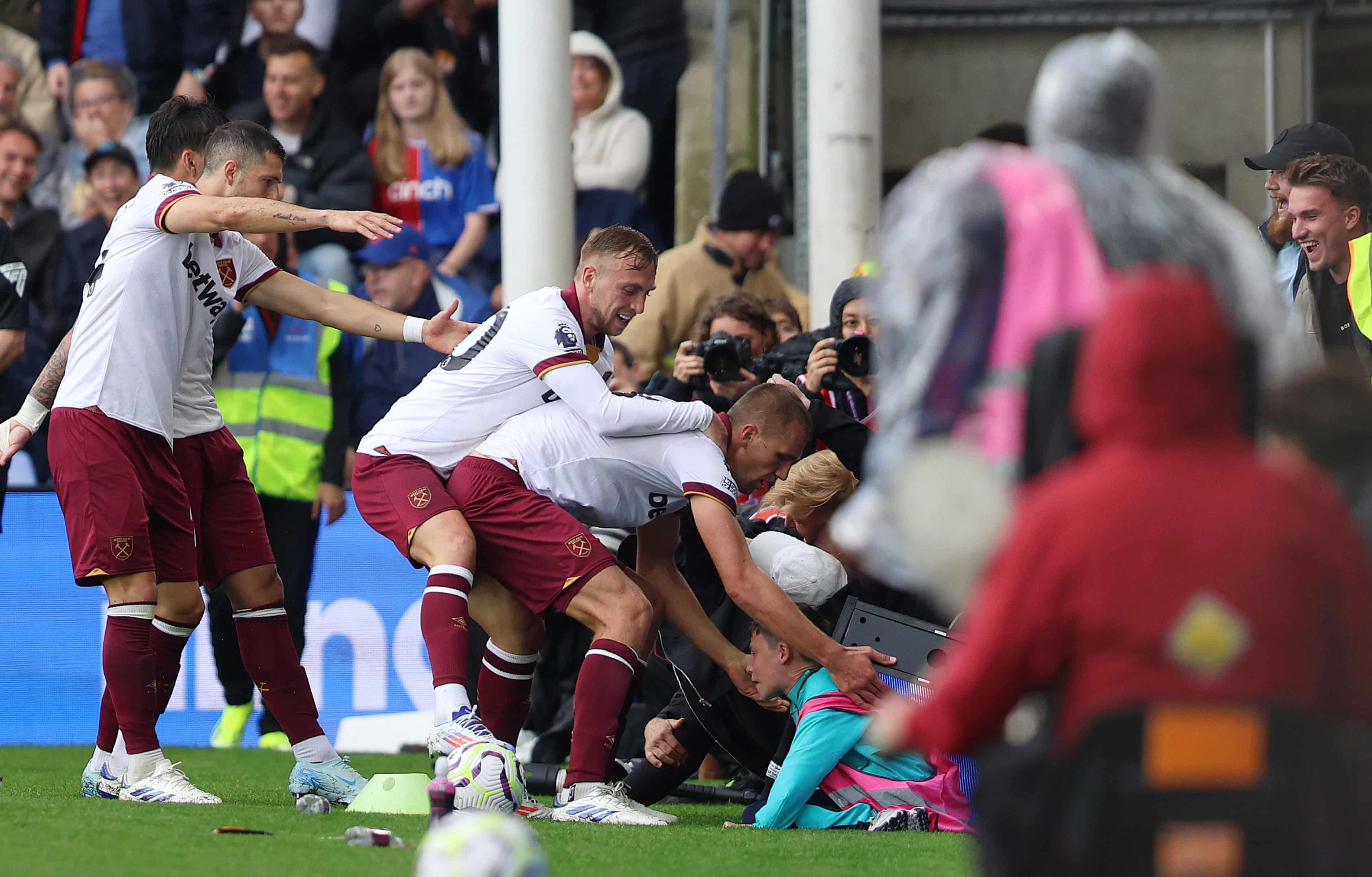 Eze: “Bollocks that woodwork!” (disclaimer: not a real quote). Home team came undone after five minutes of sharpness from the visitors sparked by ex-Palace lad Aaron Wan-Bissaka. Well done to goal-scorers Soucek & Bowen who intervened to rescue a ballboy trapped by a falling hoarding (below). That’s all heart, no snark.
