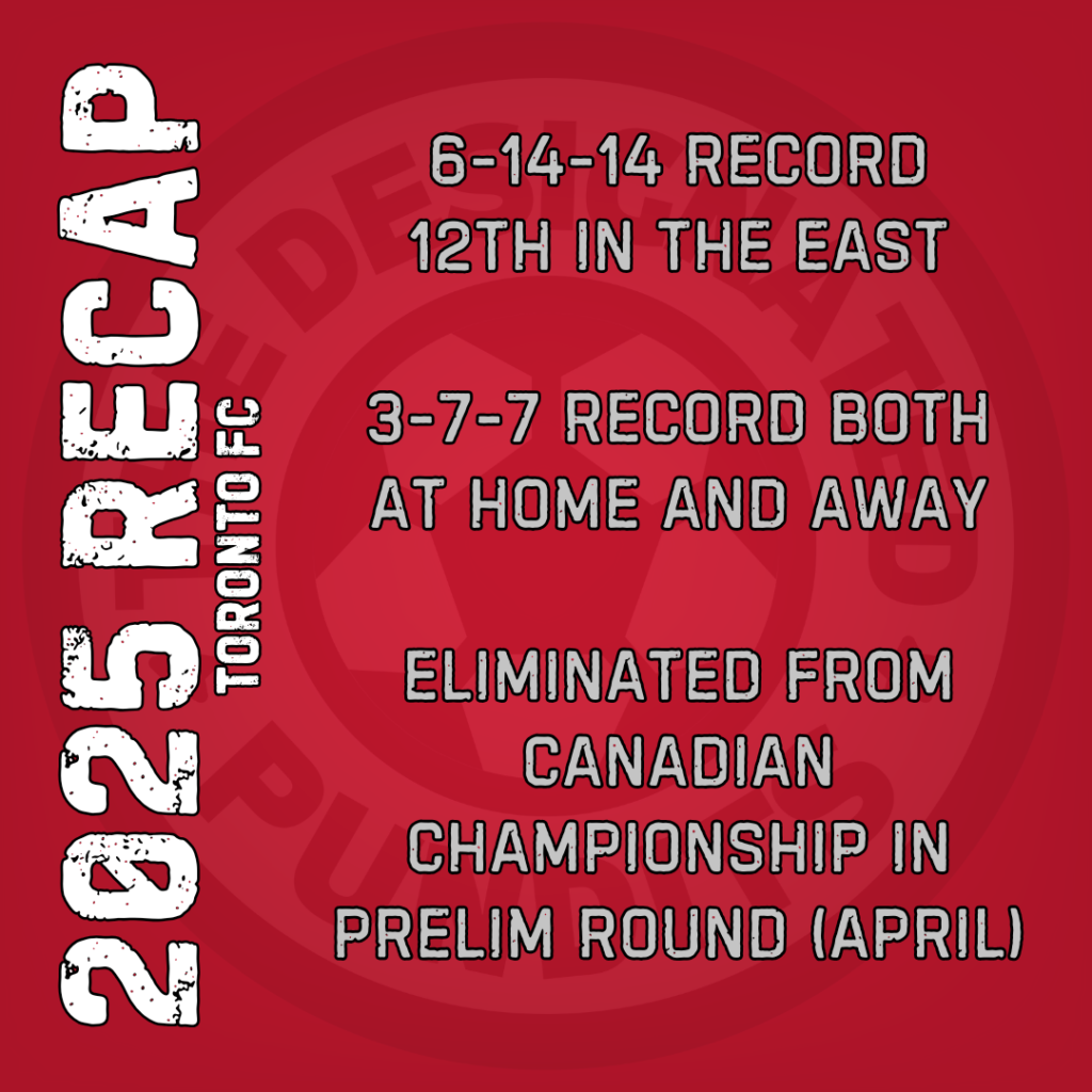 The 2025 season for Toronto FC saw them finish 12th in the east with a 6-14-14 record. While wins were hard to come by, Toronto had a stretch of 8 straight draws, which set an MLS record. Toronto had identical home and away records of 3-7-7.
