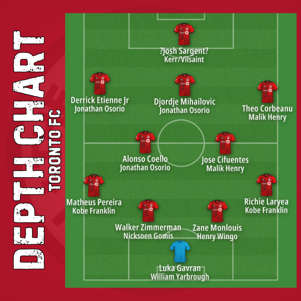 Toronto FC is going to be playing a 4-3-3 this season. If Josh Sargent doesn’t make the transfer, the center forward and both wingers would be positions that need use upgrading.
