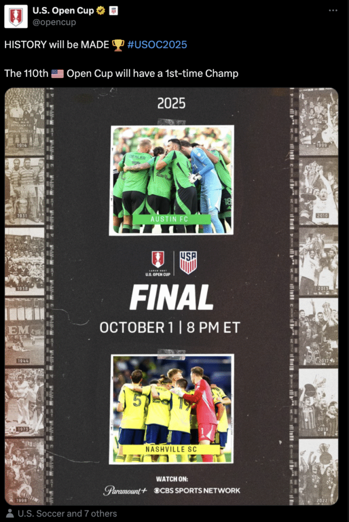 The image says it all: we will have a new club to add to the pantheon of previous U.S. Open Cup champions. That’s a very cool thing.