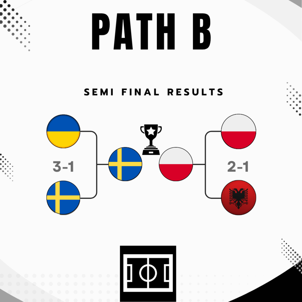 My prediction for the winner of Path B doesn’t change from the last time. It is still Poland. I think a battle-hardened Poland will need either extra time or penalties to beat Sweden after a closely contested 90 minutes.