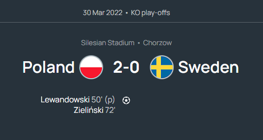 Exactly four years ago, March 30, 2022, Poland and Sweden played the same fixture for the same outcome. A Zlatan Ibrahimović-led Sweden team faced Lewandowski’s Poland for a place at the 2022 FIFA World Cup. Poland beat Sweden 2-0 to qualify for Qatar. Poland’s goalscorers in that fixture, Robert Lewandowski and Piotr Zieliński, who were also the only scorers in the semifinal against Albania, are all set to start the 2026 fixture vs Sweden as well.